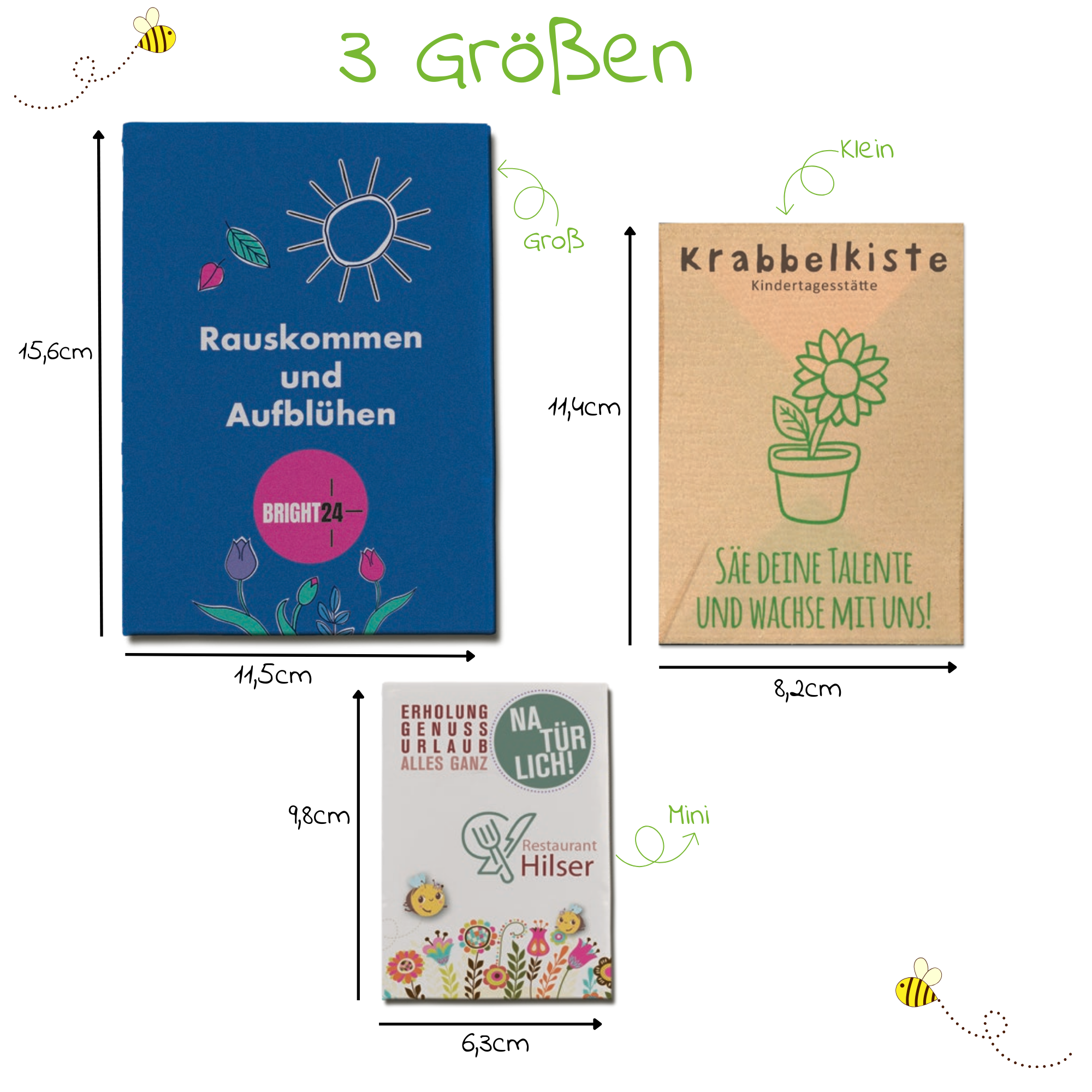 🎁 Verschiedene Größen: Erhältlich als Mini, Klein oder Groß – für unterschiedliche Werbebudgets und Einsatzbereiche.