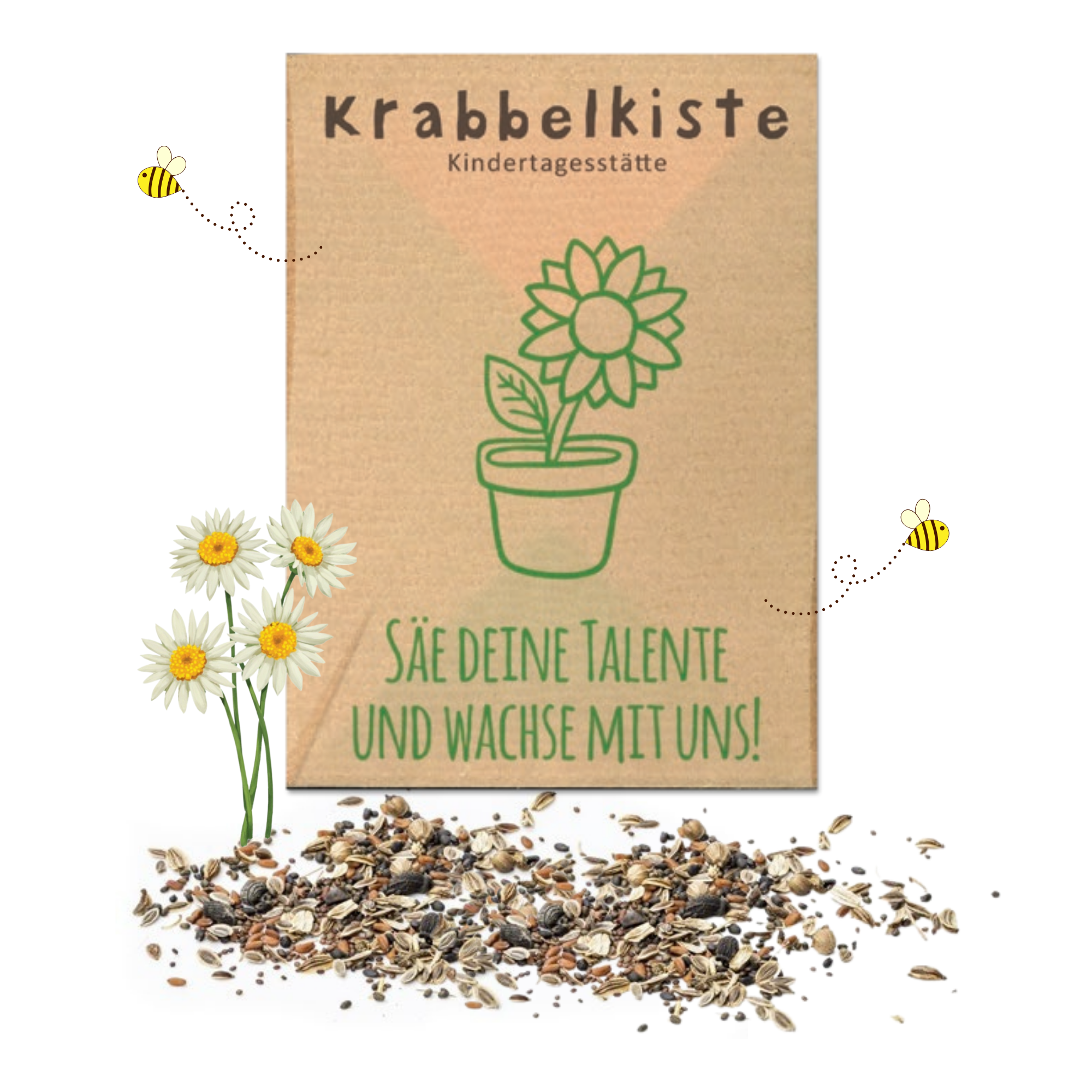 Unsere Samentütchen verbinden nachhaltige Werbung mit ökologischem Mehrwert und Kreativität. Sie können vollständig nach Ihren Wünschen gestaltet und mit verschiedenen Samensorten befüllt werden. Die Tütchen bestehen aus zertifizierten Papierarten wie Graspapier, Recyclingpapier, Natronkraftpapier oder Standardpapier und sind dadurch besonders umweltfreundlich. Ideal für Mailings, Events, Messen oder als sympathisches Give-away mit ökologischem Mehrwert.